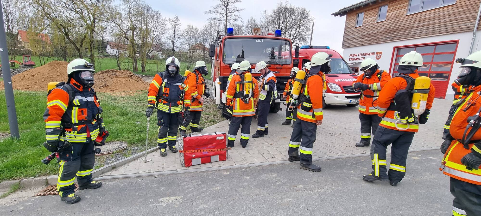 Nachdem die aktuelle Pandemielage wieder größere Übungen erlaubt und uns in Bärnreuth ein Abrisshaus als Übungsobjekt zur Verfügung steht, nutzten wir diese Gelegenheit für eine Löschzugübung. Neben der FF Bärnreuth nahmen auch die Wehren Escherlich und Wasserknoden mit ihren Atemschutzgeräteträgern an der Übung teil. Angenommen wurde ein Brand im Gebäude, mit mehreren vermissten Personen.