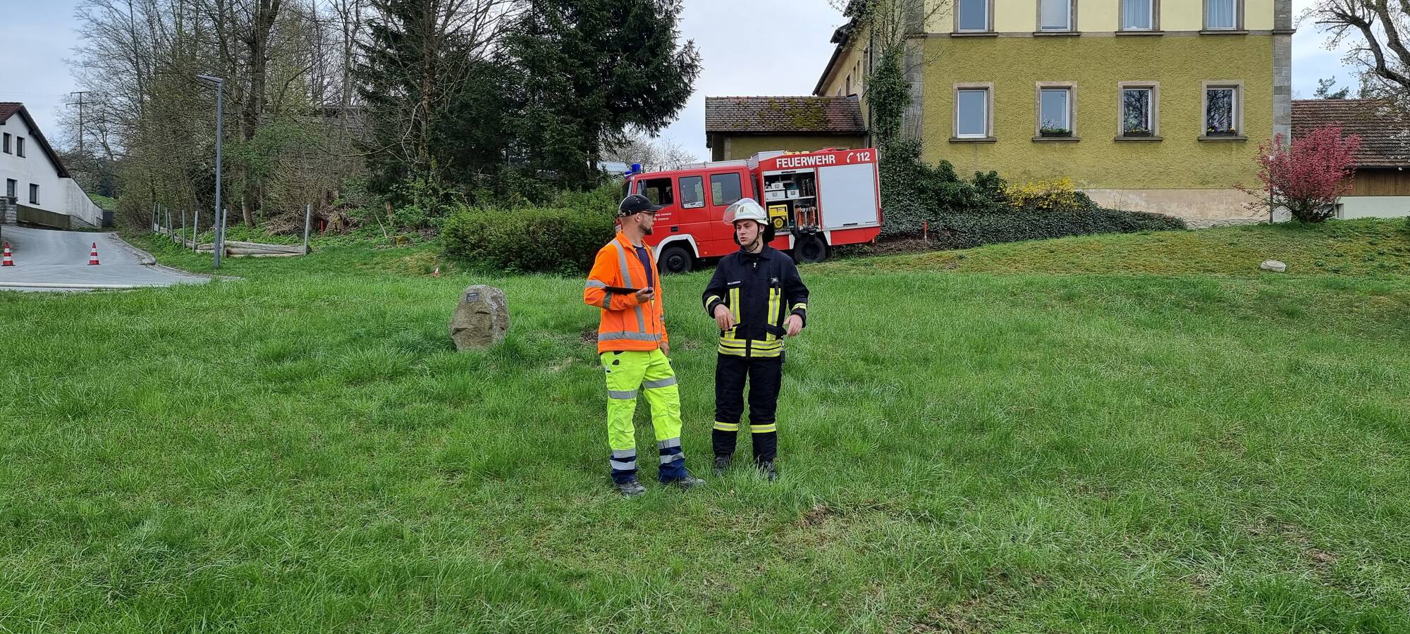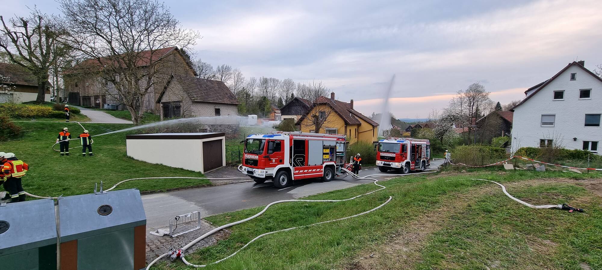 Parallel zu den Aufgaben für die Atemschutzgeräteträger wurde auch das Wasserleitungsnetz in Bärnreuth auf die Probe gestellt. Hierfür wurde aus zwei Hydranten im Ort Wasser entnommen, welches zur Verteidigung umliegender Gebäude mit Strahlrohren und Wasserwerfern verwendet wurde. Der Bad Bernecker Wasserwart war mit vor Ort und überwachte während der Übung das Leitungsnetz. Mit der gleichzeitigen Wasserabgabe aus mehreren Strahlrohen und einem Wasserwerfer konnte das Wassernetz auch tatsächlich an seine Grenzen gebracht werden, was die Wichtigkeit des Bärnreuthers Löschweihers unterstrich.