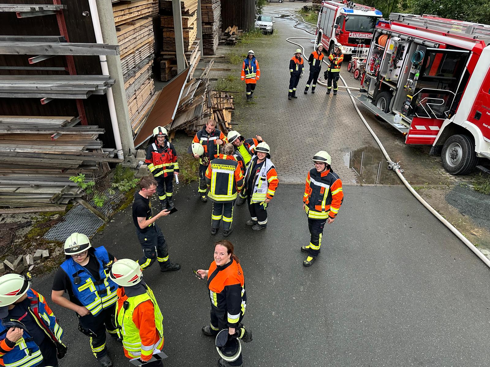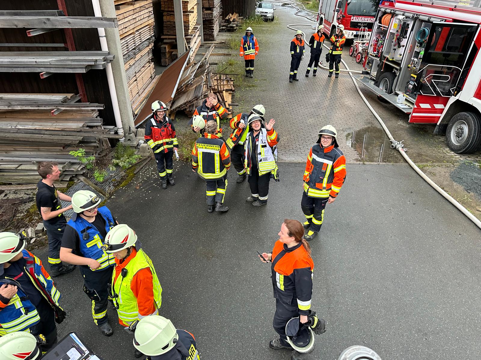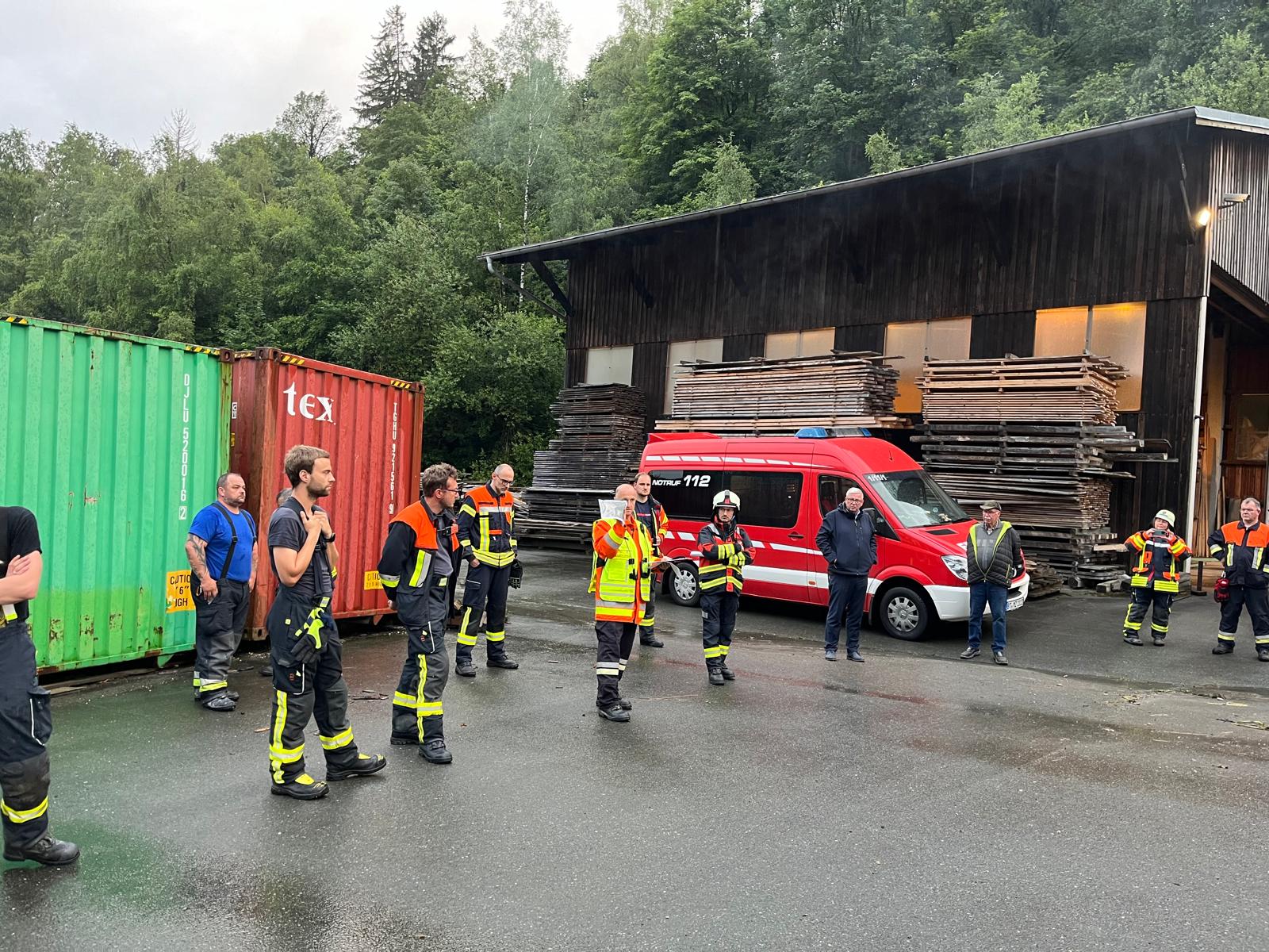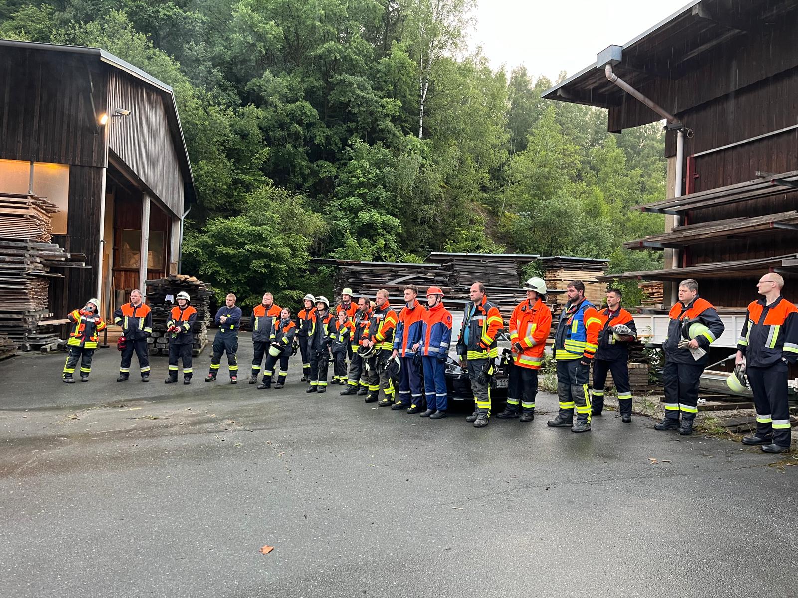 Am Donnerstag, den 04. Juli 2024, hatten wir die Möglichkeit gemeinsam mit unseren Ortswehren auf dem Gelände des Sägewerks Wirth in Hohenknoden üben zu können. Die Besonderheit bei dieser Übung: Unsere Kommandanten waren nicht in den Übungsvorbereitungen involviert. Wie im Ernstfall auch, mussten sie so unvorbereitet auf die ihnen dargebotene Lage reagieren. Unsere Ortswehren warteten abrufbereit in ihren Gerätehäusern.