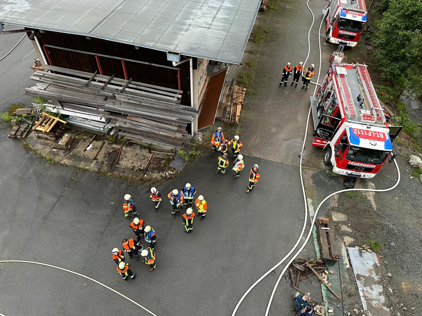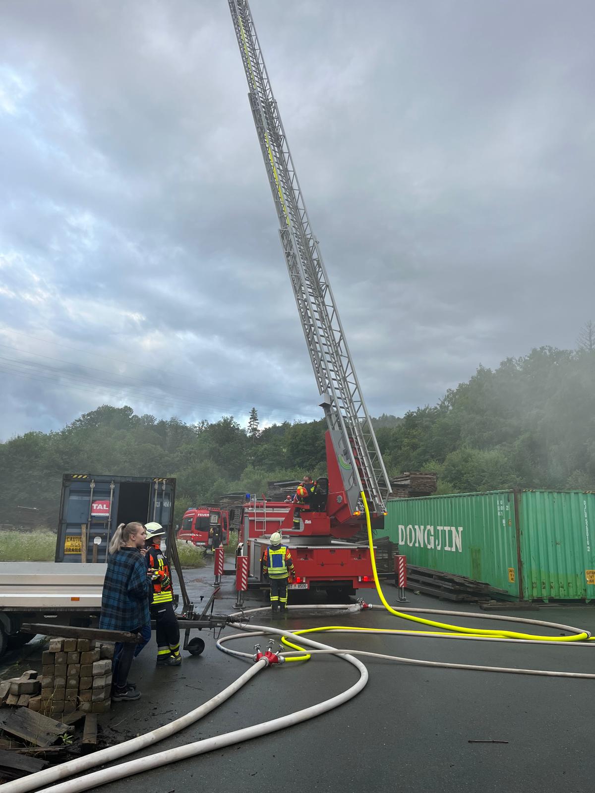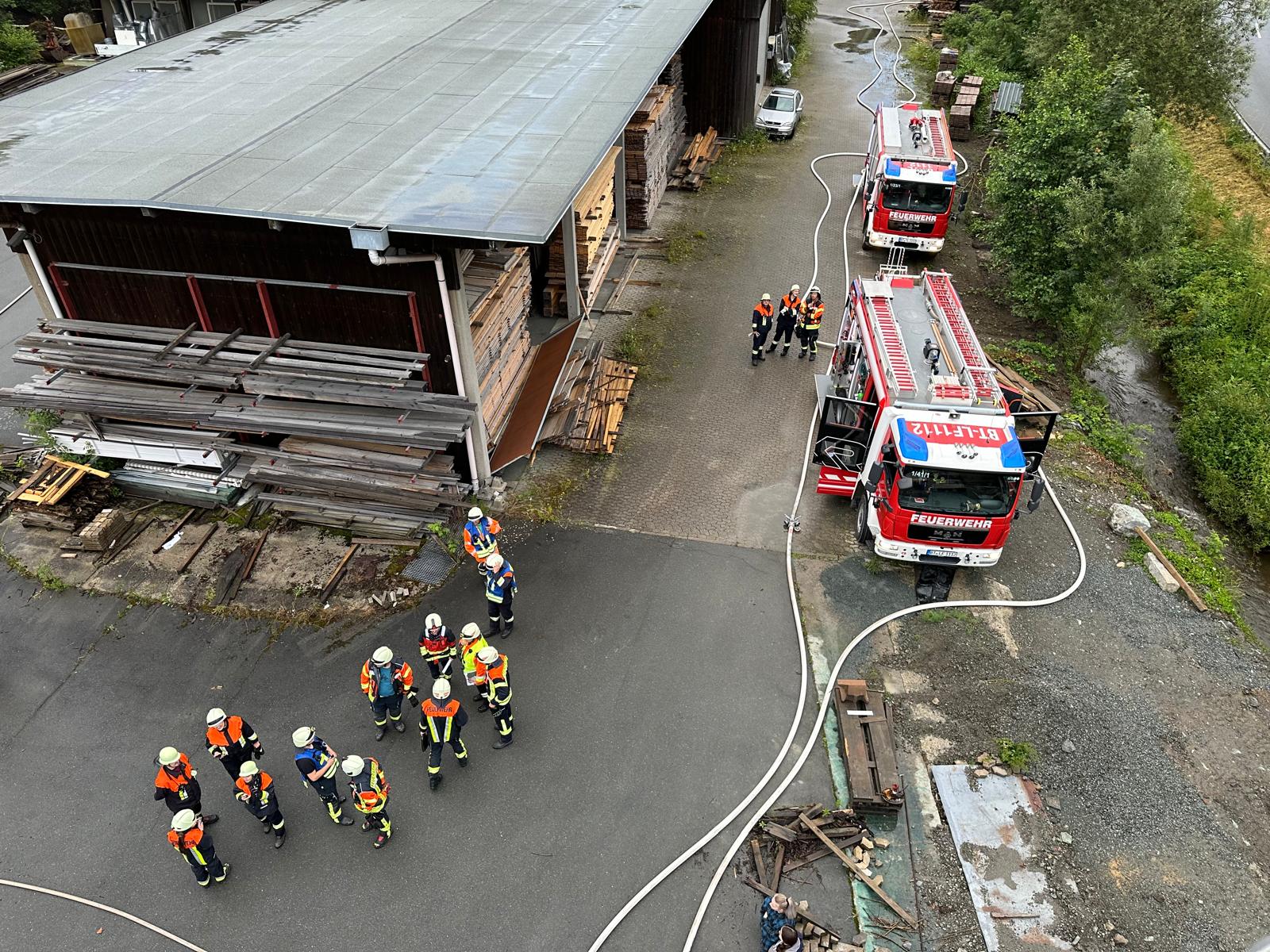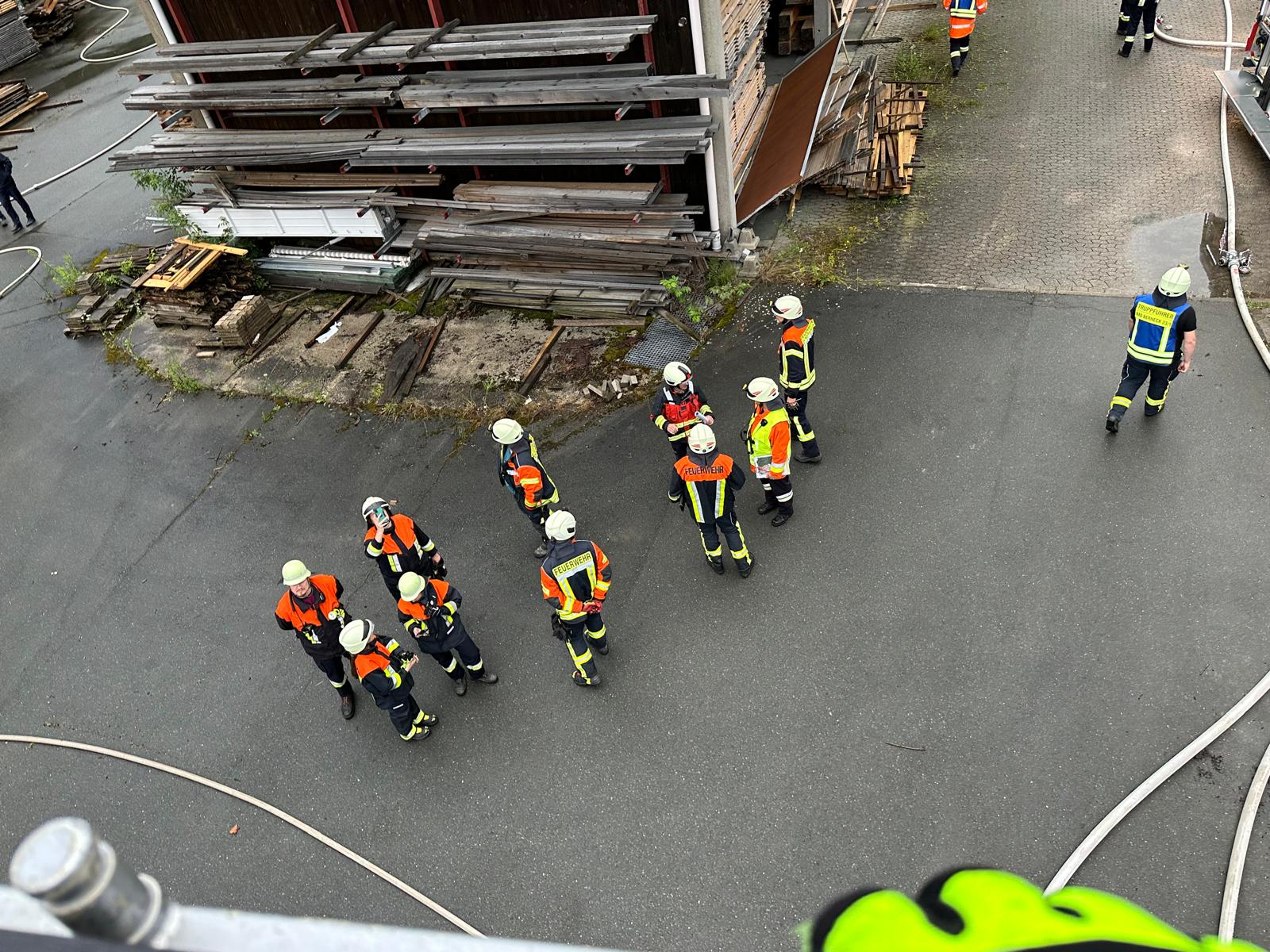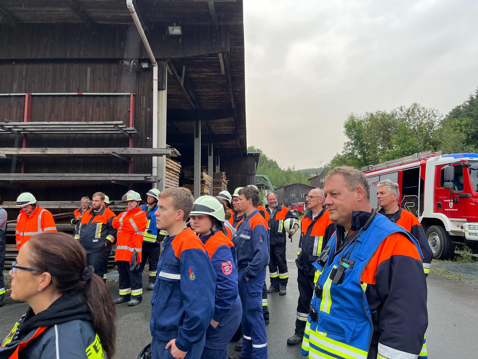 Am Donnerstag, den 04. Juli 2024, hatten wir die Möglichkeit gemeinsam mit unseren Ortswehren auf dem Gelände des Sägewerks Wirth in Hohenknoden üben zu können. Die Besonderheit bei dieser Übung: Unsere Kommandanten waren nicht in den Übungsvorbereitungen involviert. Wie im Ernstfall auch, mussten sie so unvorbereitet auf die ihnen dargebotene Lage reagieren. Unsere Ortswehren warteten abrufbereit in ihren Gerätehäusern.