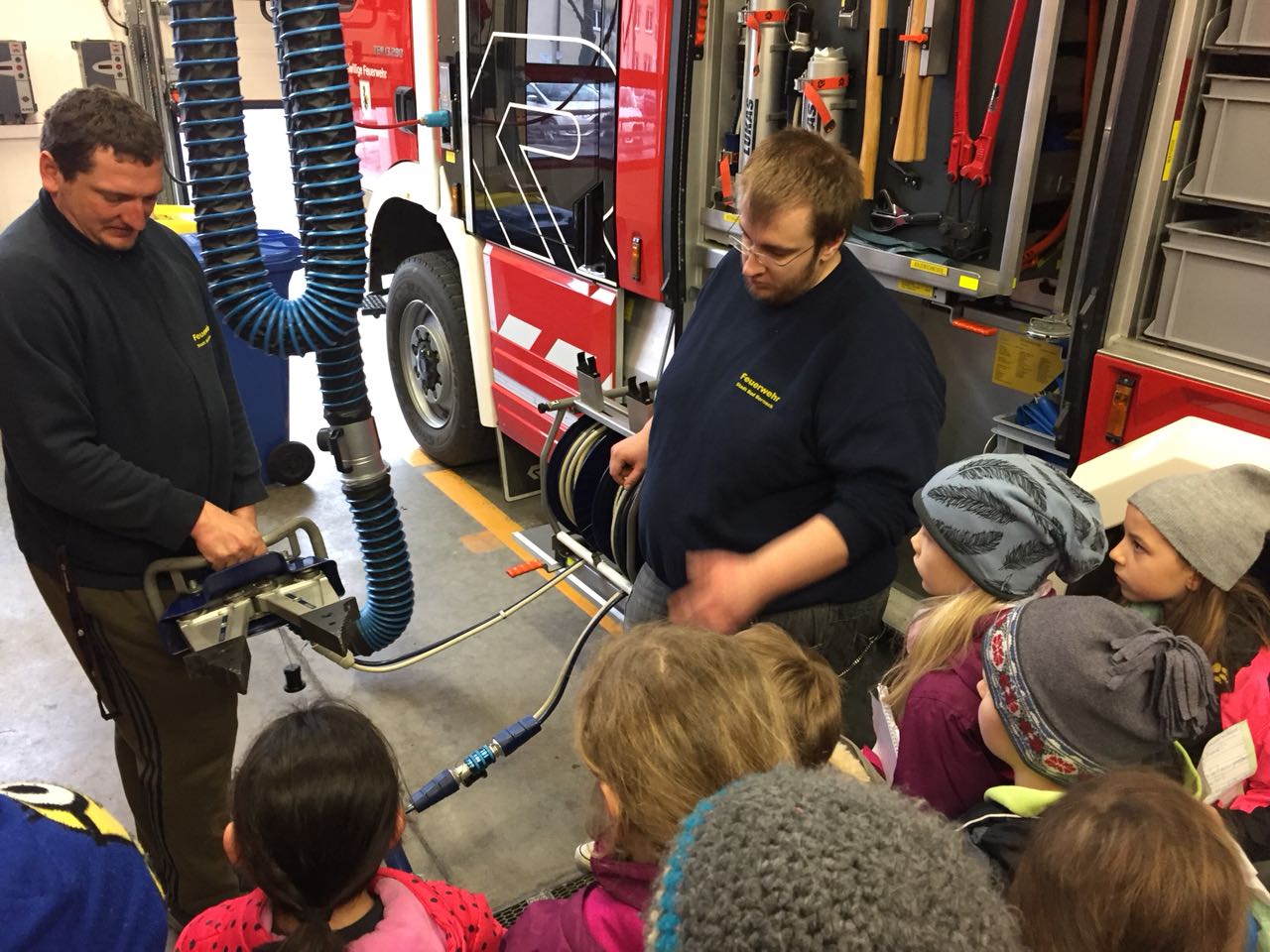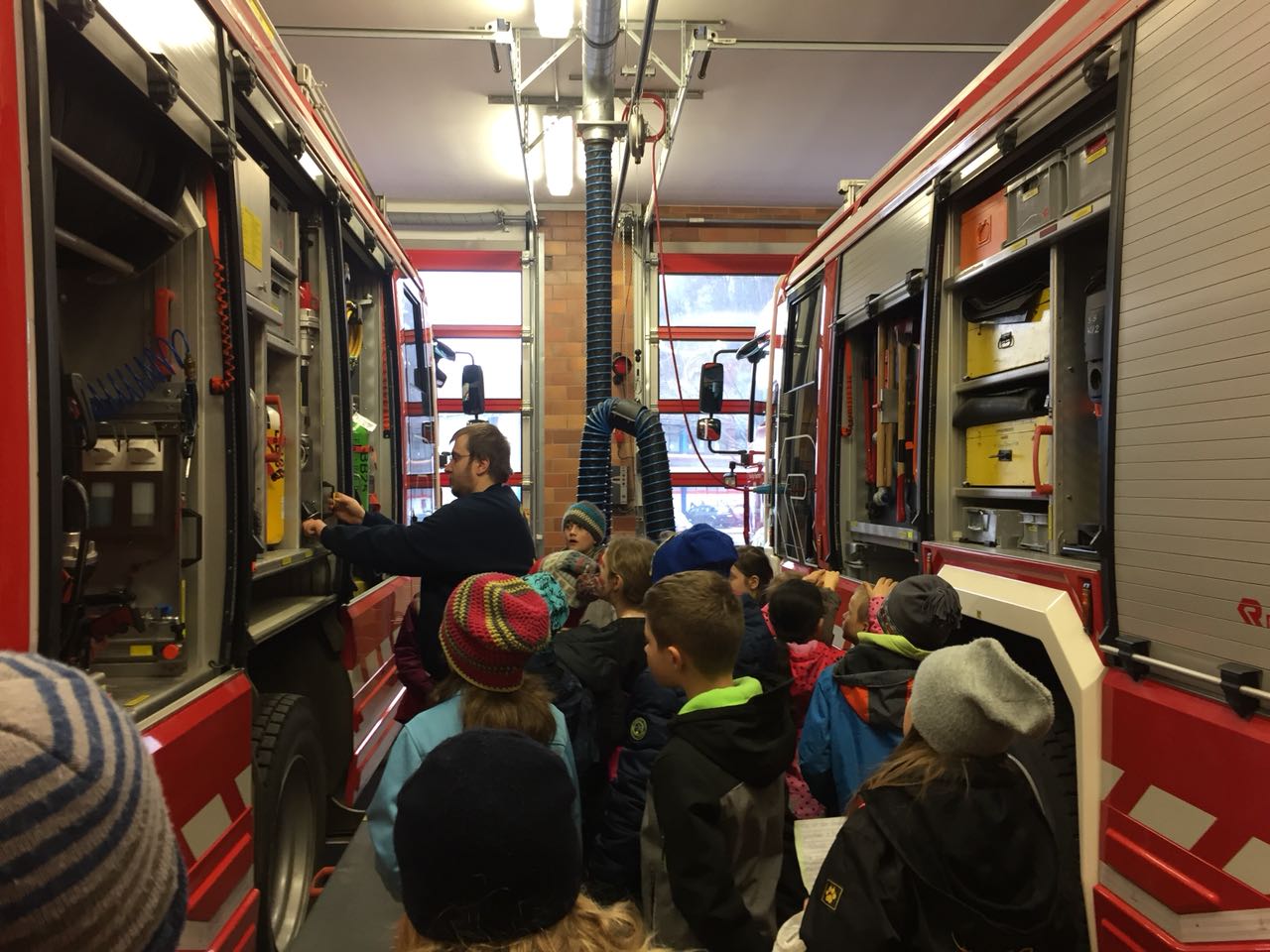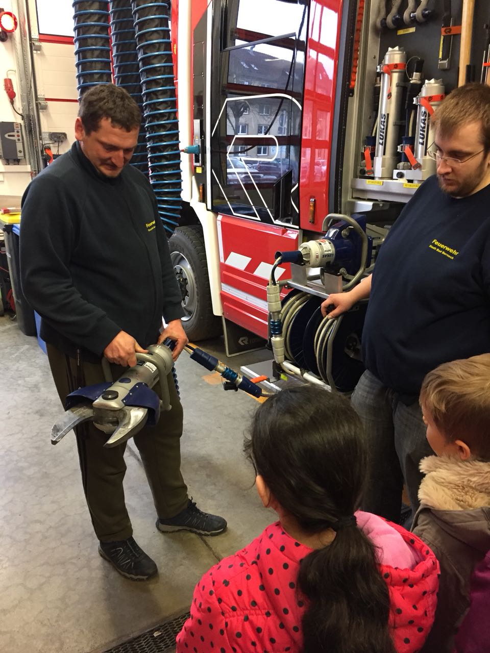 Den Schülern wurden das Gerätehaus und unsere Fahrzeuge mit all ihren Geräten, Funktionen und Besonderheiten gezeigt.