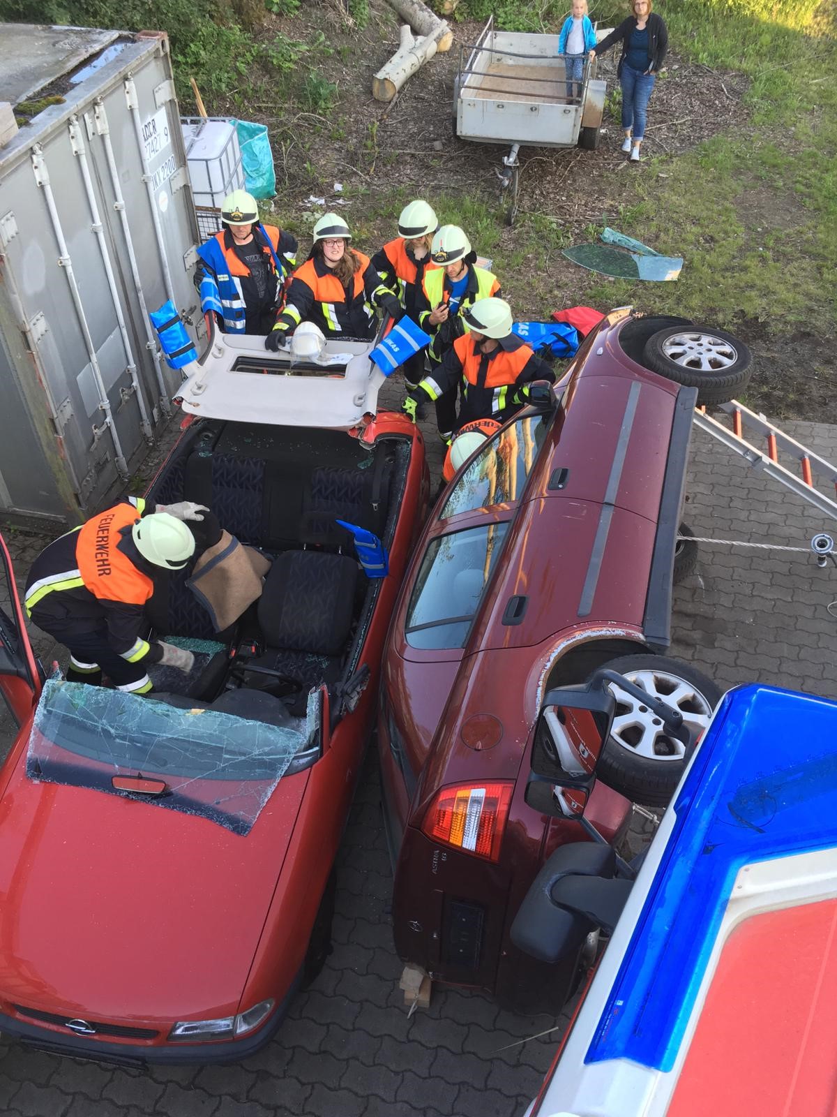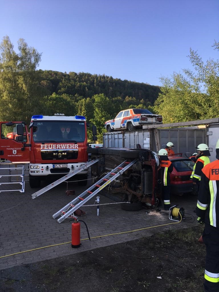 Unterstützt wurden wir hier durch Stefan Neuß, der uns zwei PKWs zur Verfügung stellte und auf dessen Werkstattgelände wir unsere Übung abhalten durften.