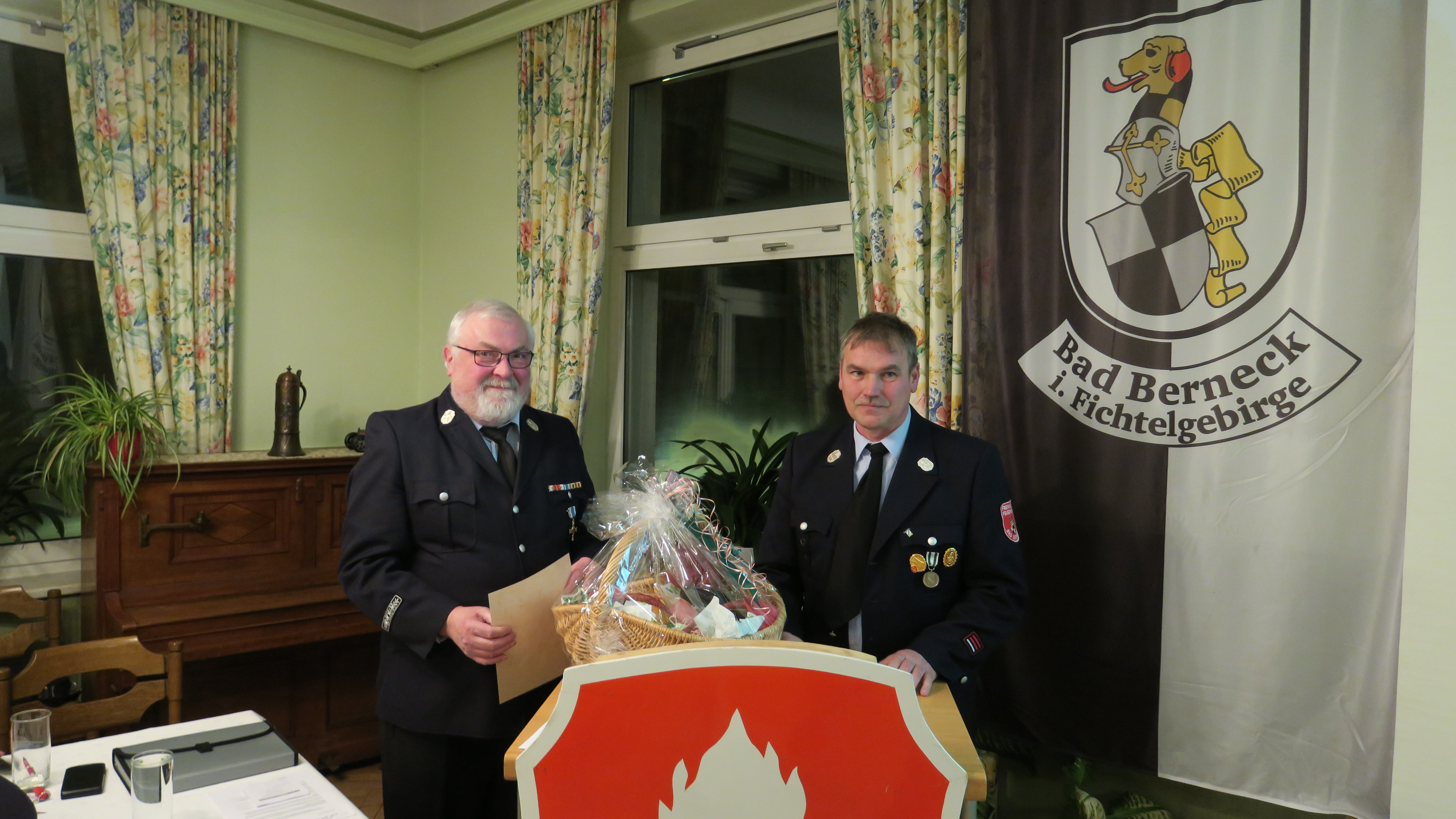 Im Anschluss bedankte sich die Jugendfeuerwehr mit einem Präsentkorb bei unserem Mitglied Helmut Teufel, der anlässlich seines runden Geburtstages Spenden für unsere Jugendgruppe gesammelt hatte.