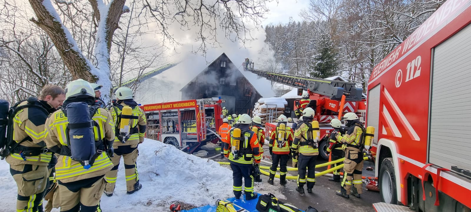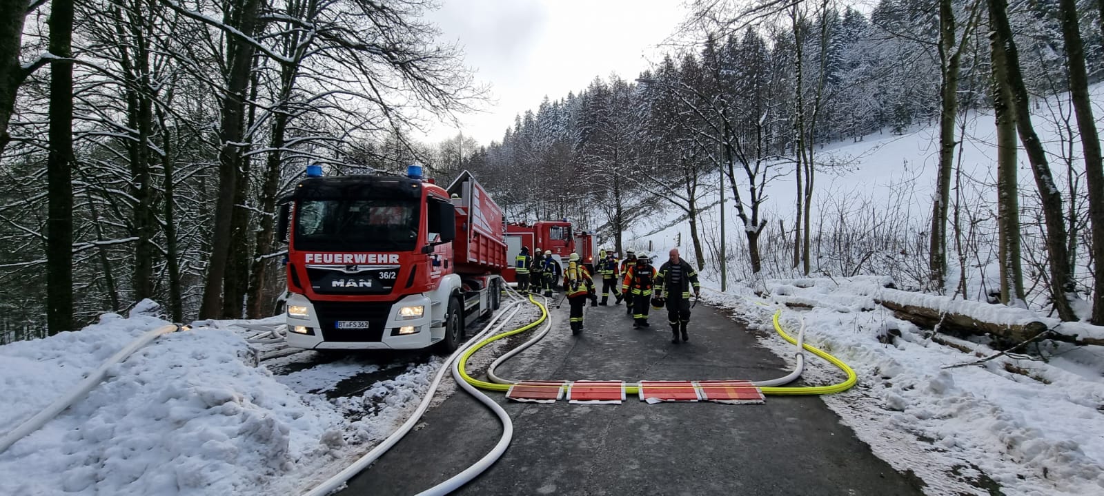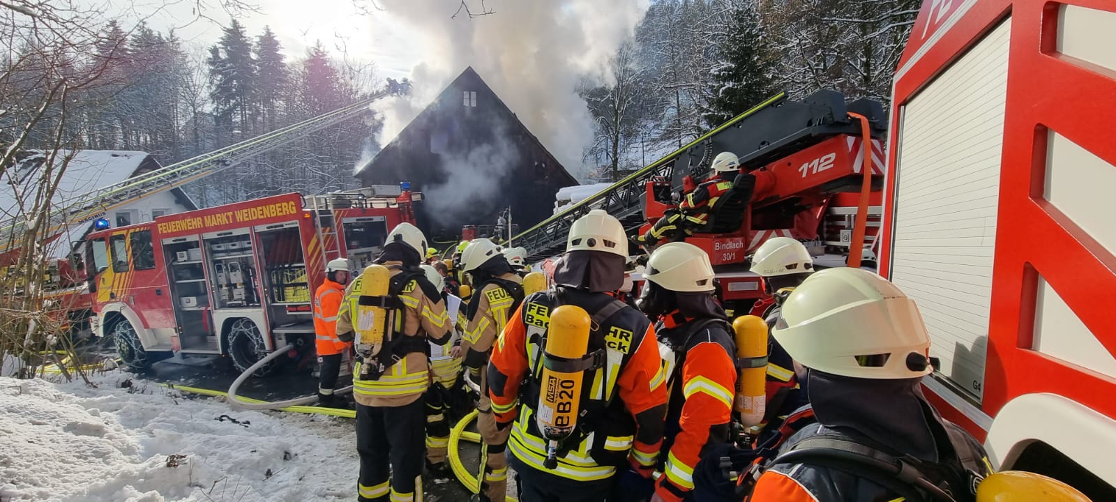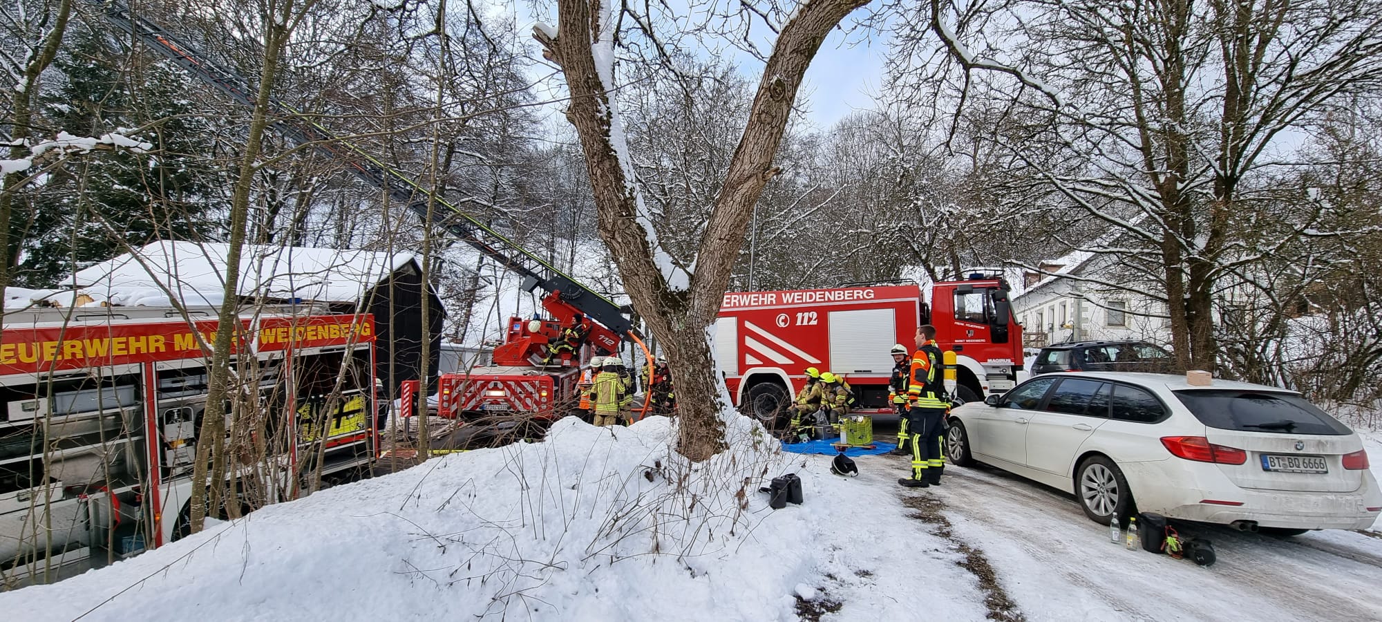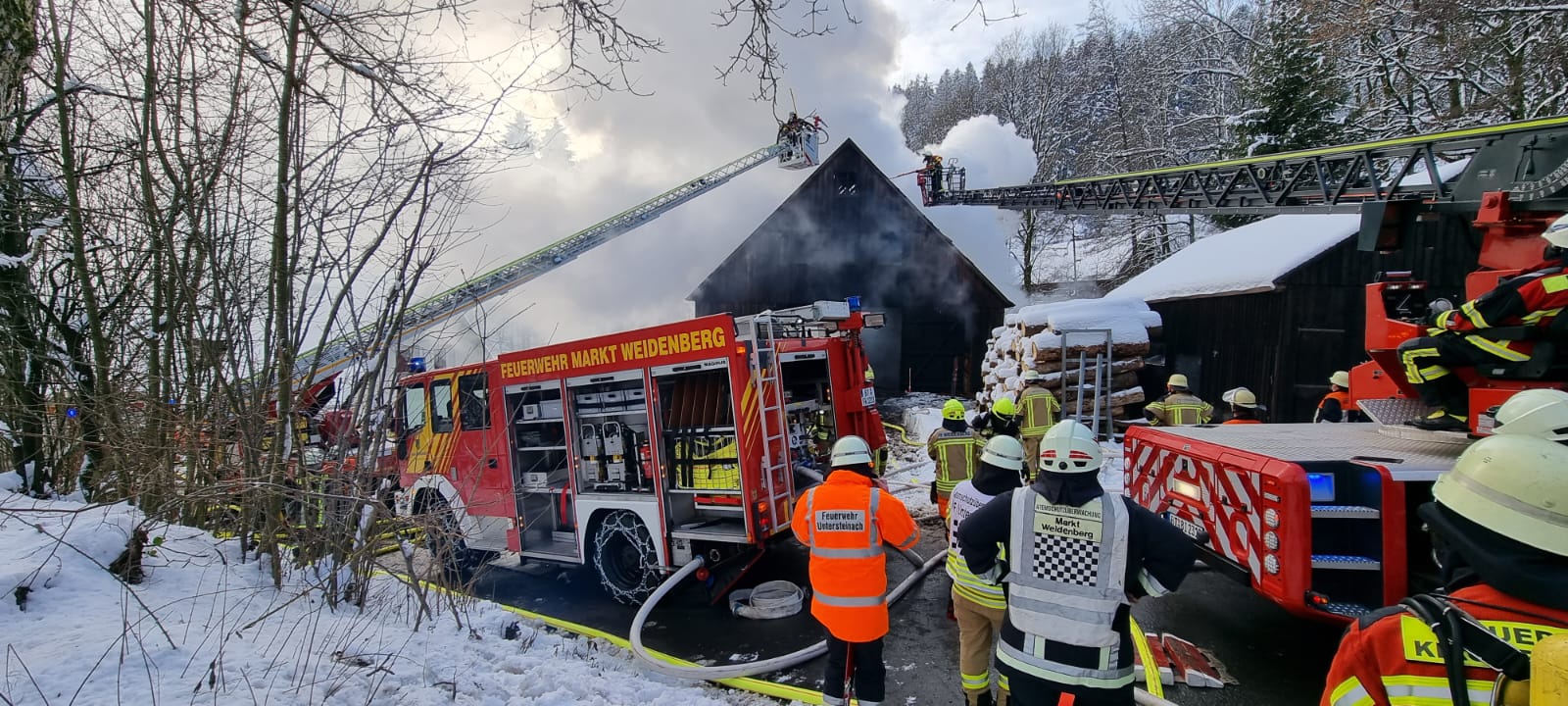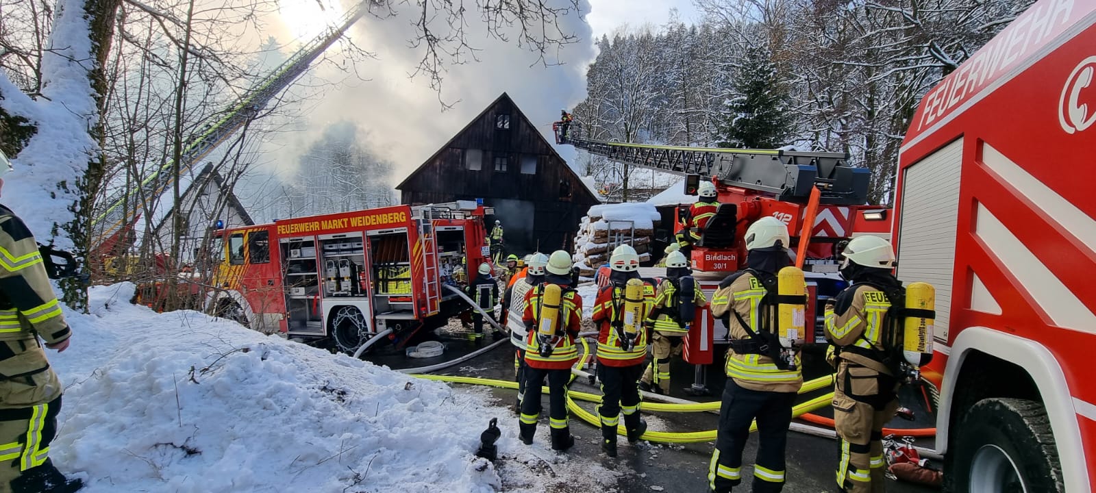 Am Mittwoch, den 12. Januar 2022, wurden wir um 11:16 zu einem Scheunenbrand in einer kleinen Ortschaft bei Weidenberg alarmiert. Bereits während der Anfahrt konnten wir eine dicke Rauchwolke erkennen.