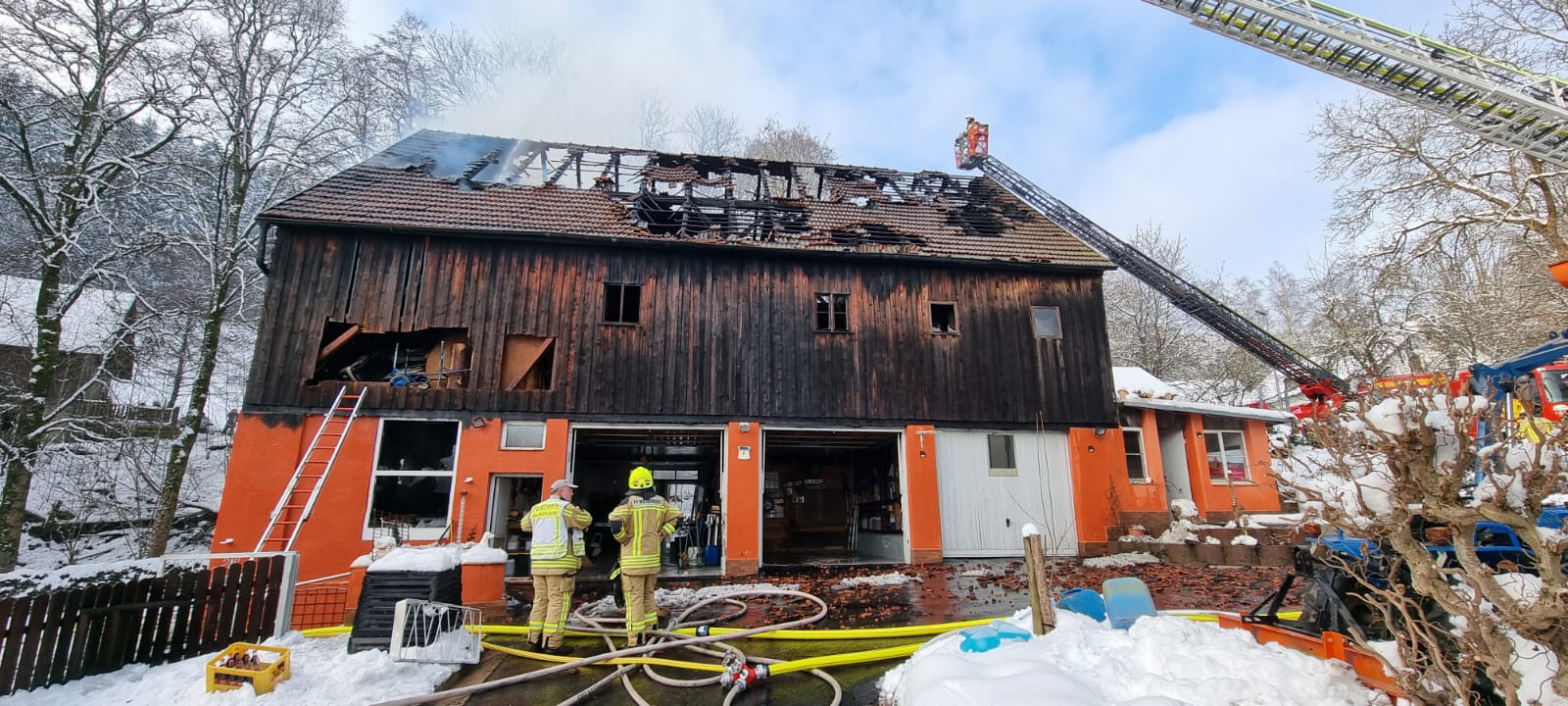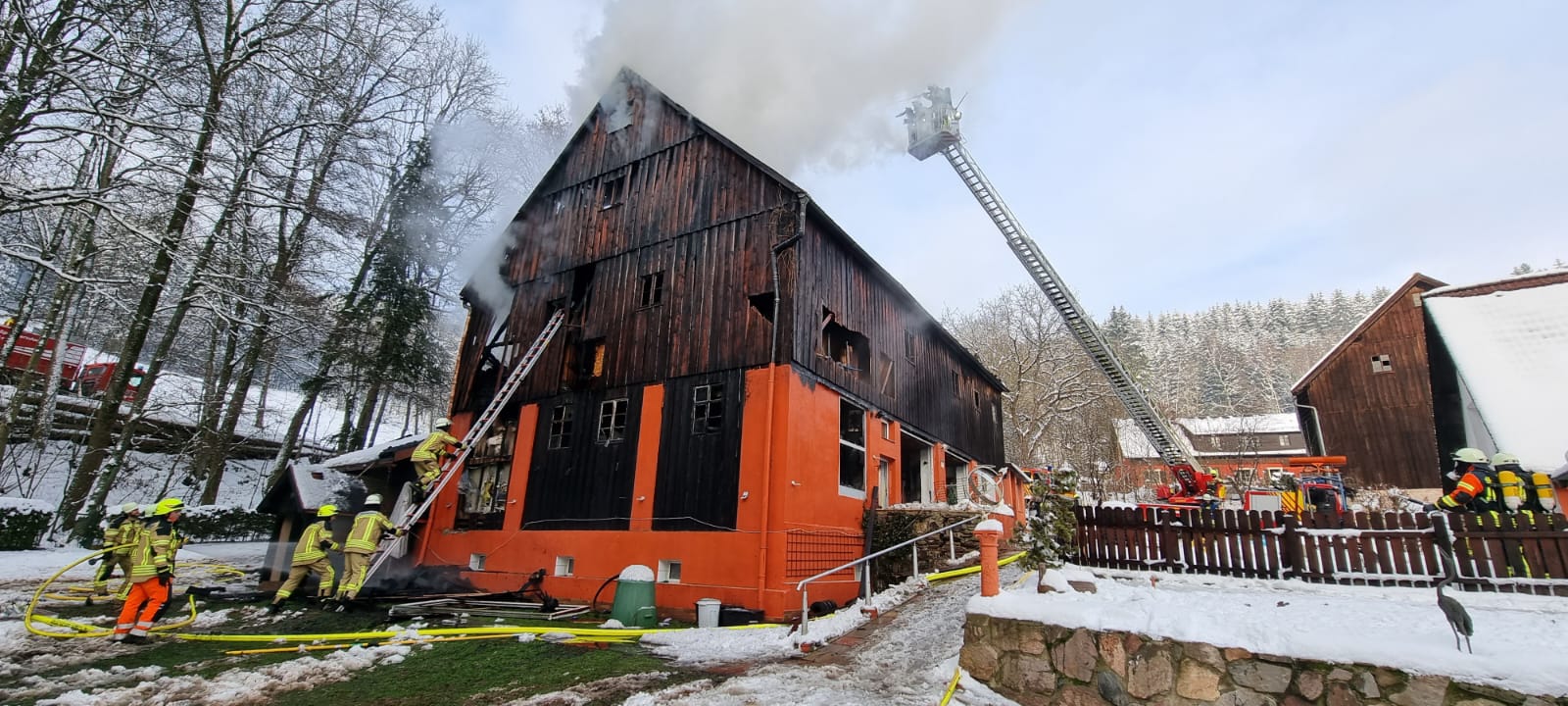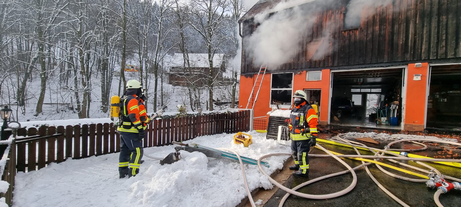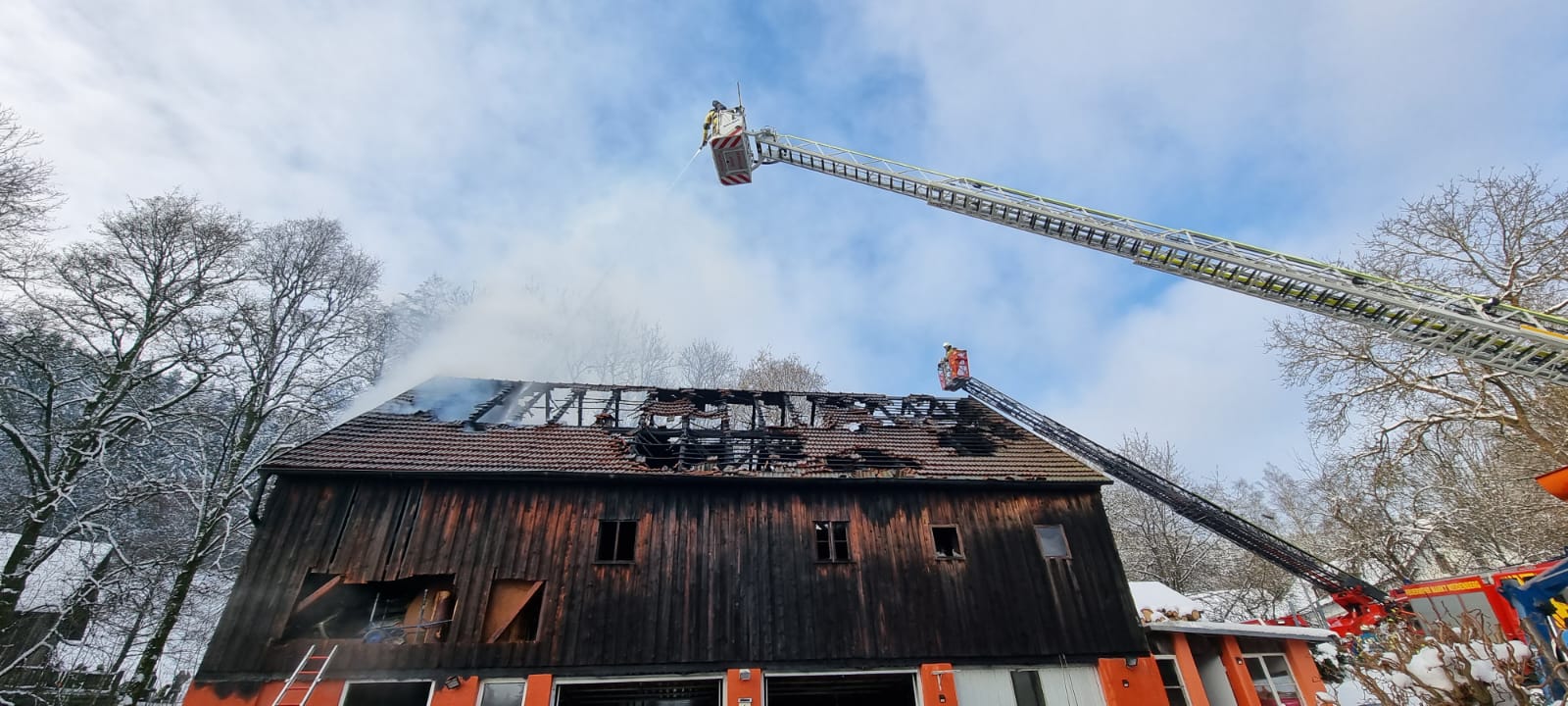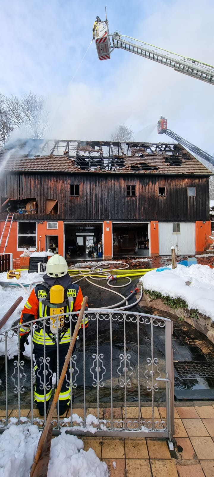 Am Mittwoch, den 12. Januar 2022, wurden wir um 11:16 zu einem Scheunenbrand in einer kleinen Ortschaft bei Weidenberg alarmiert. Bereits während der Anfahrt konnten wir eine dicke Rauchwolke erkennen.