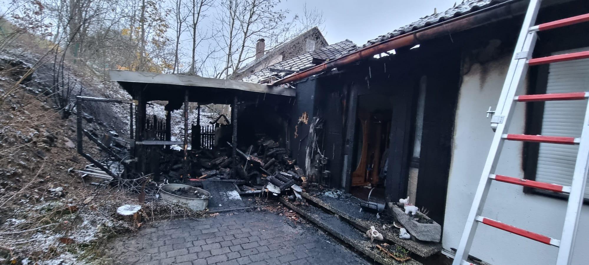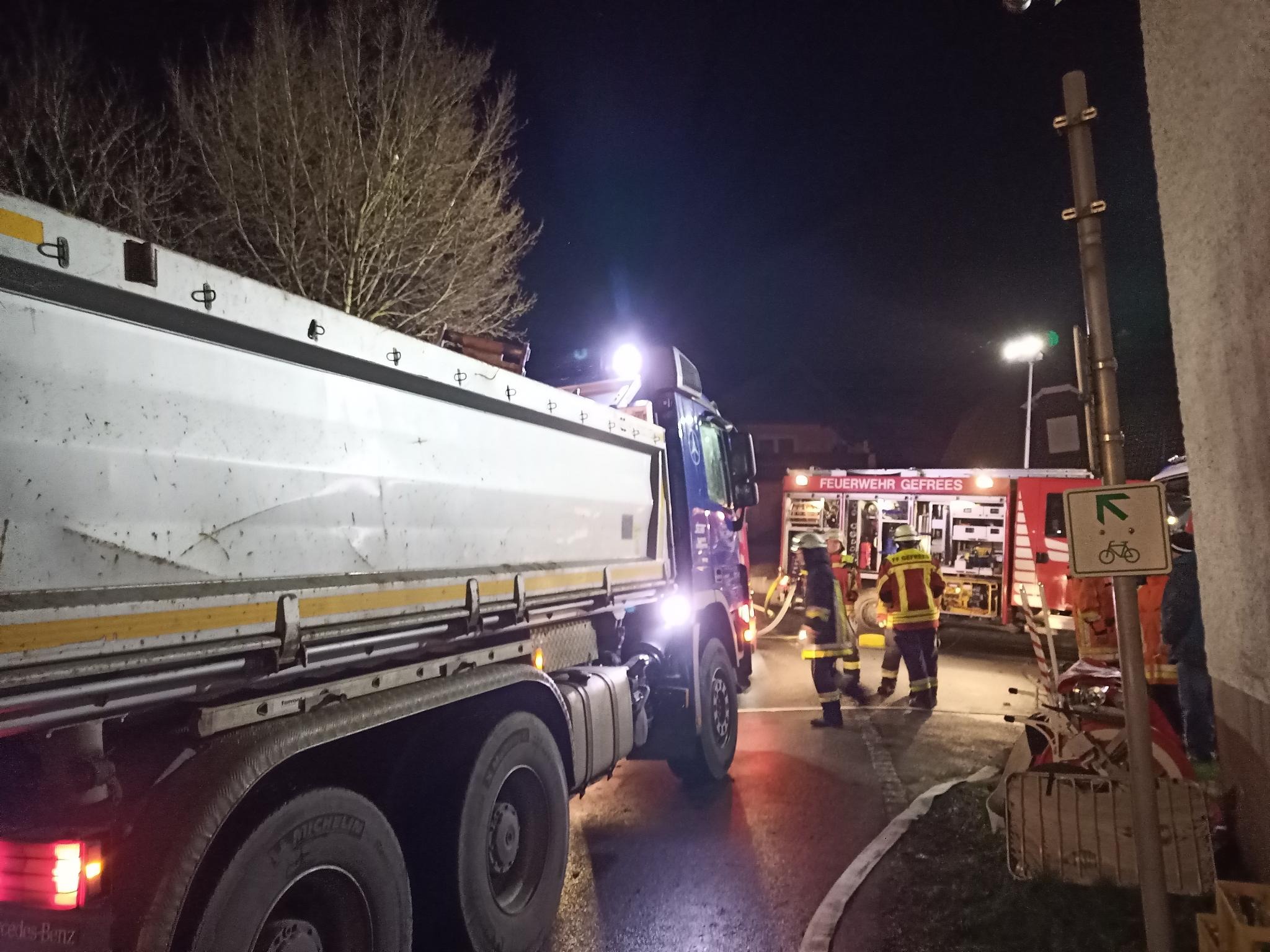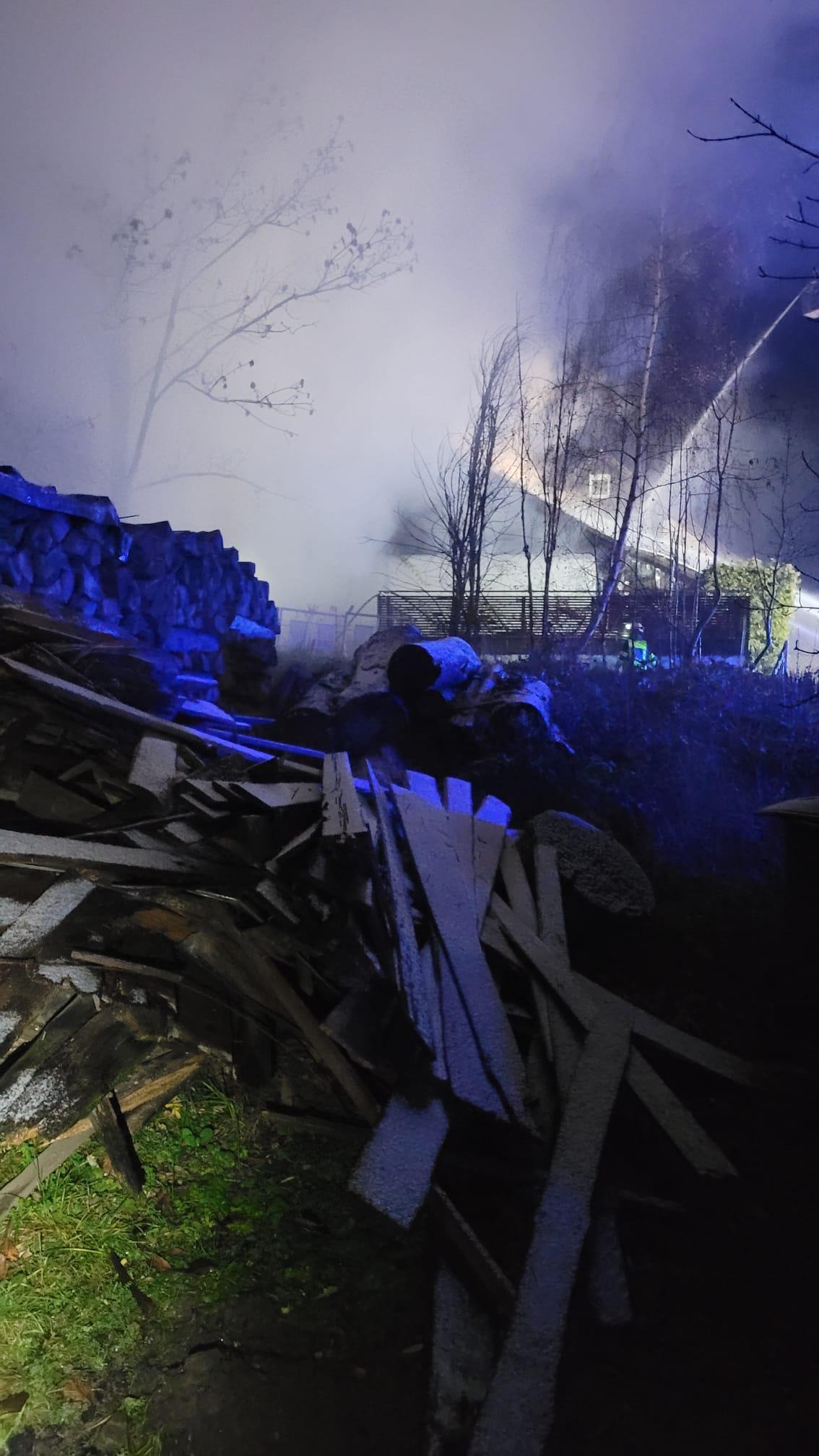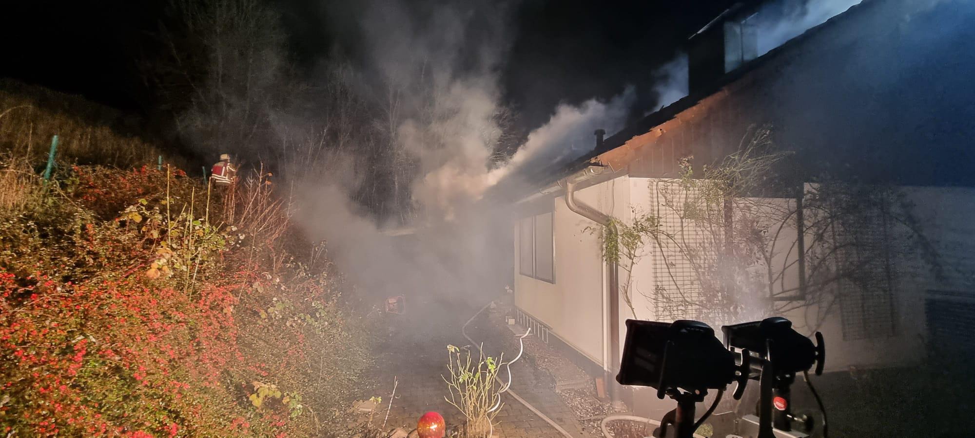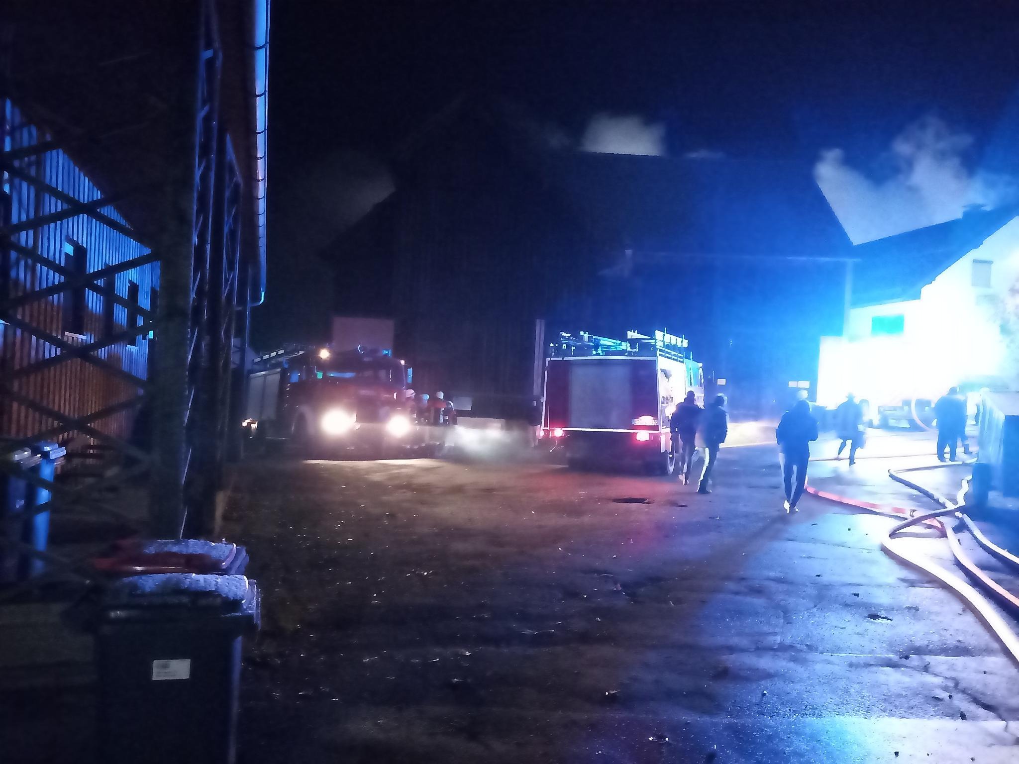 Bei Eintreffen der ersten Kräfte hatte sich das Feuer von einem Holzunterstand bereits auf den gesamten Dachstuhl ausgebreitet. Die Brandbekämpfung stellte sich als sehr schwierig heraus, da die auf dem Dach installierte Photovoltaikanlage den Zugang zum Feuer stark erschwerte. Unser TLF stellte in den ersten Minuten die Wasserversorgung sicher, während die Mannschaft unseres LF den Erstangriff unter Atemschutz unternahm. Zeitgleich baute die Feuerwehr Gefrees mit ihrer Drehleiter eine Riegelstellung zum Schutz des Nachbarhauses auf. Im weiteren Verlauf des Einsatzes bekämpften viele weitere Atemschutztrupps der anwesenden Wehren das Feuer im Außenangriff von allen Seiten. Zusätzlich wurde auch noch die Drehleiter der Feuerwehr Weidenberg eingesetzt. Ein Innenangriff war nicht möglich, da das Dach unter der Last der PV-Anlage bereits im frühen Einsatzverlauf eingebrochen war.