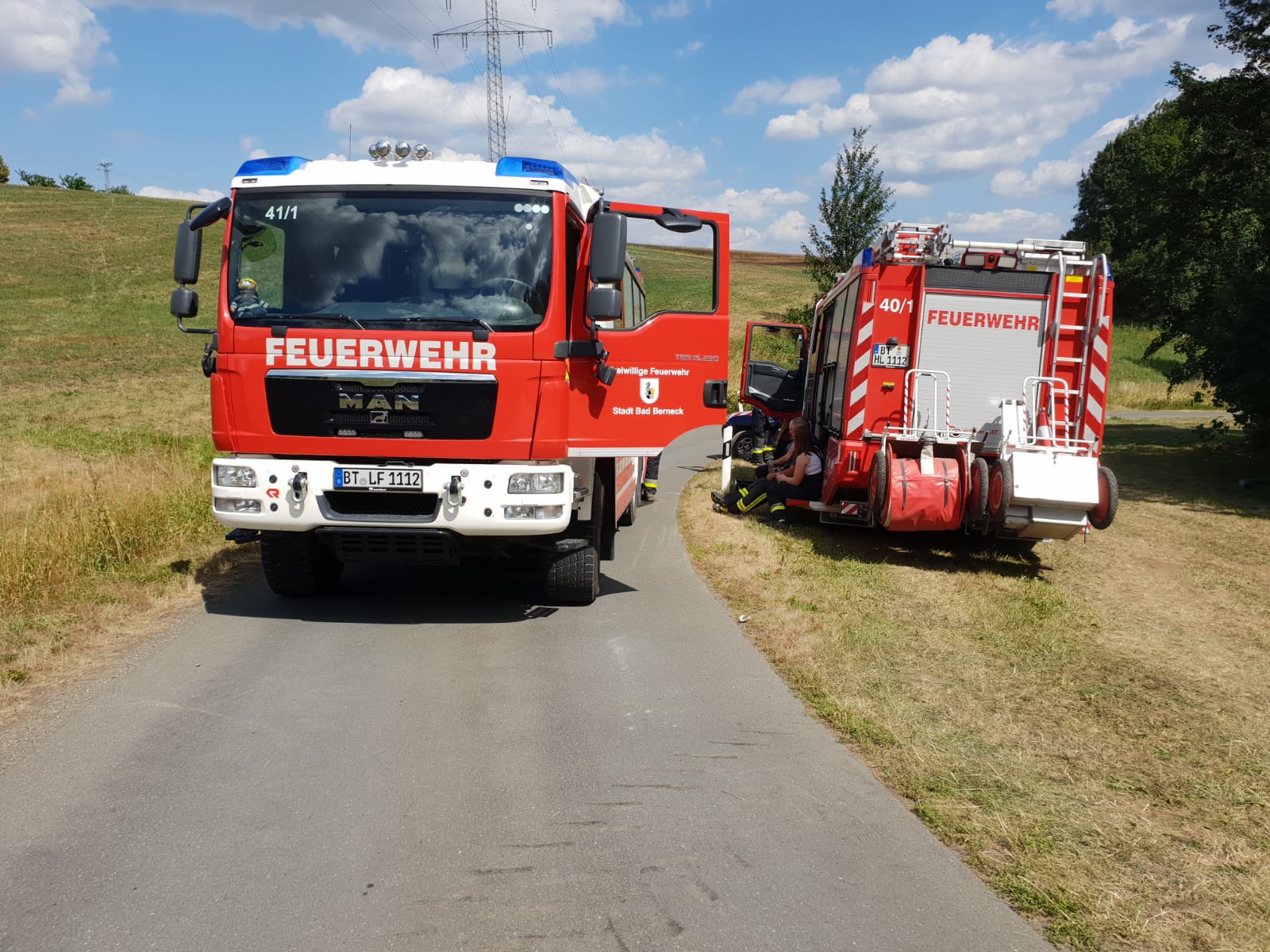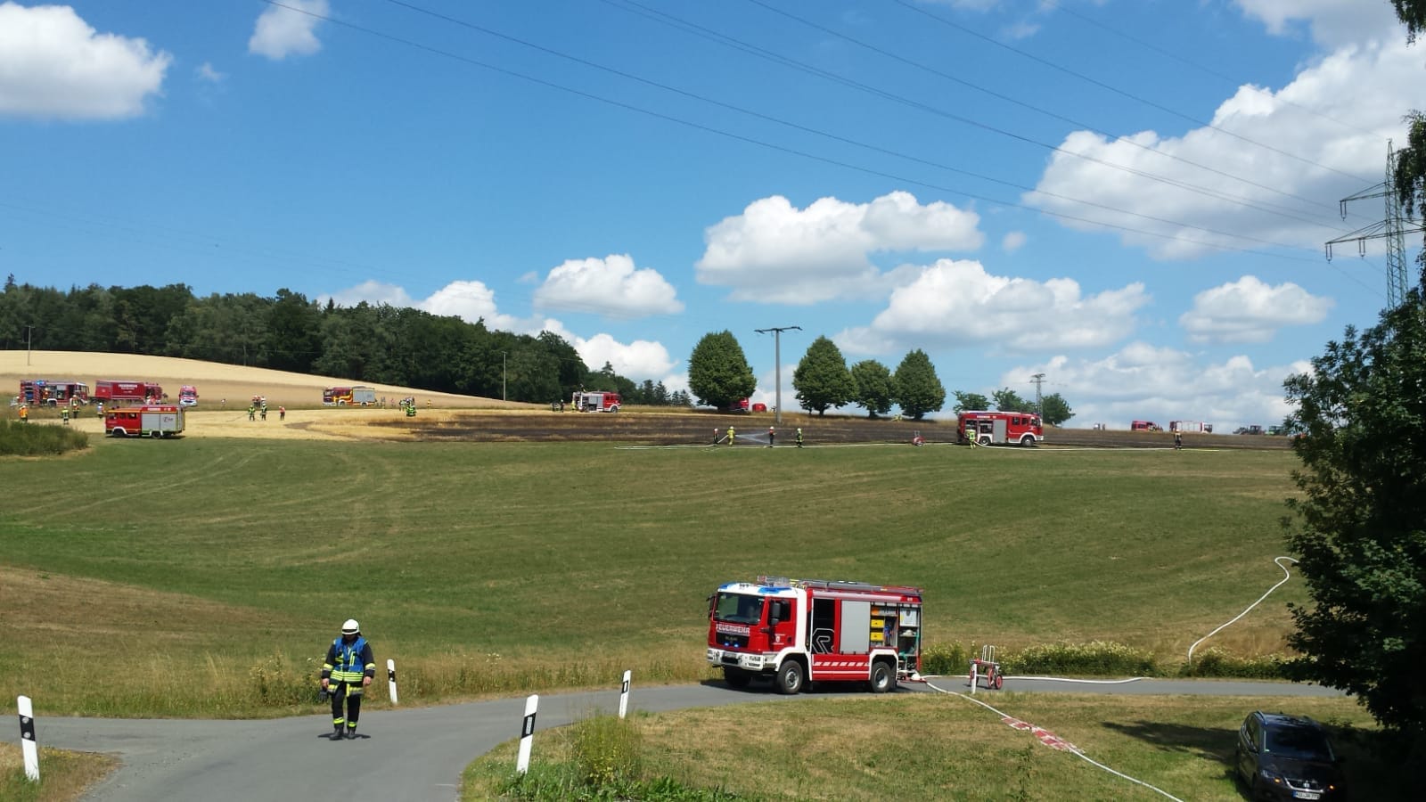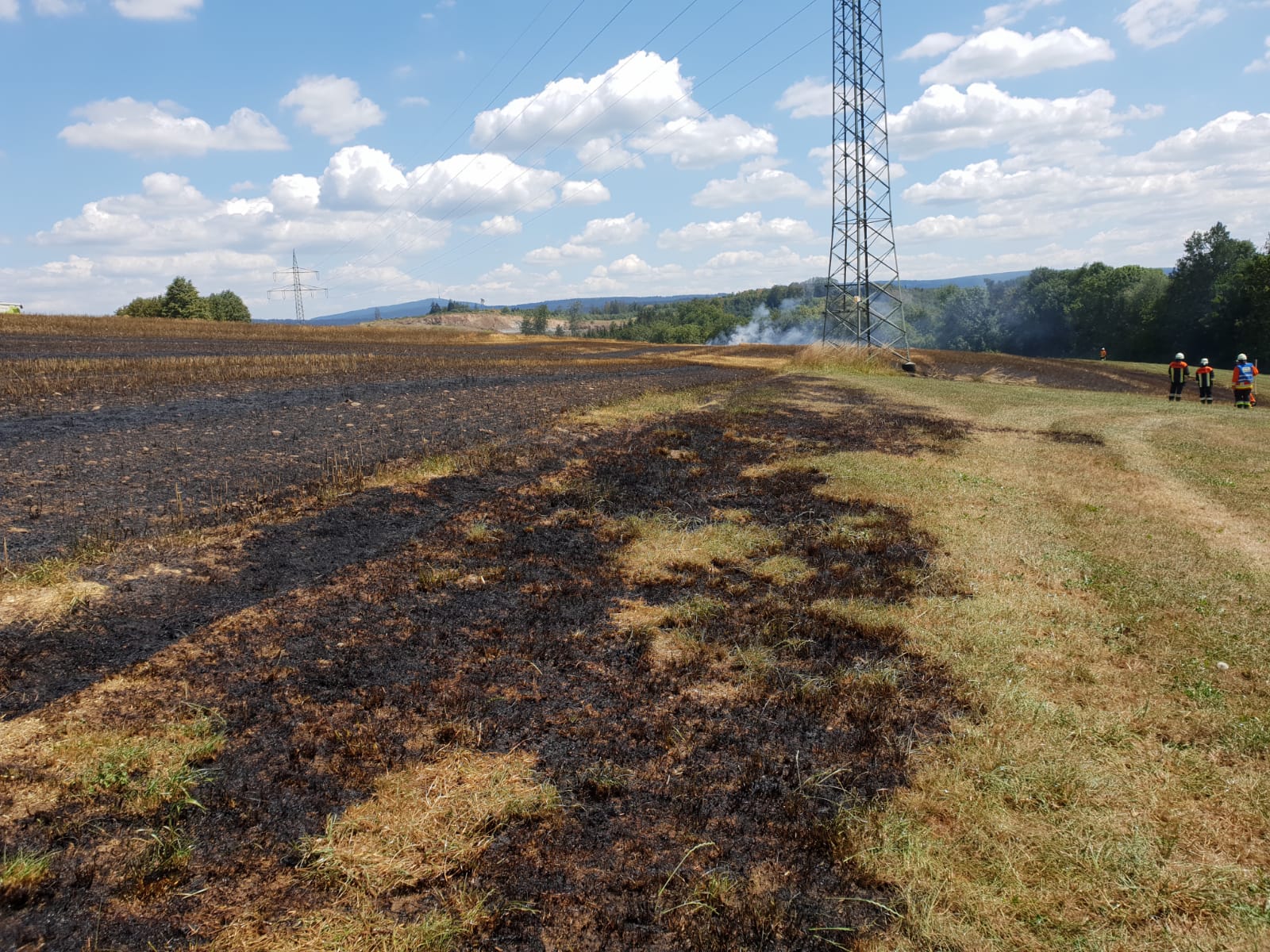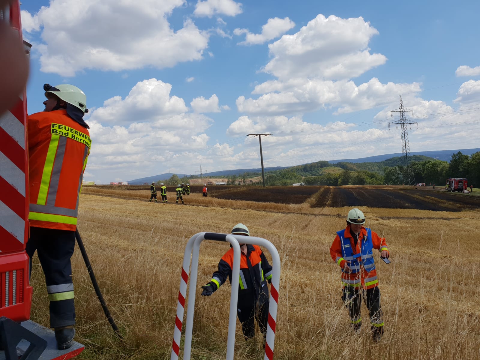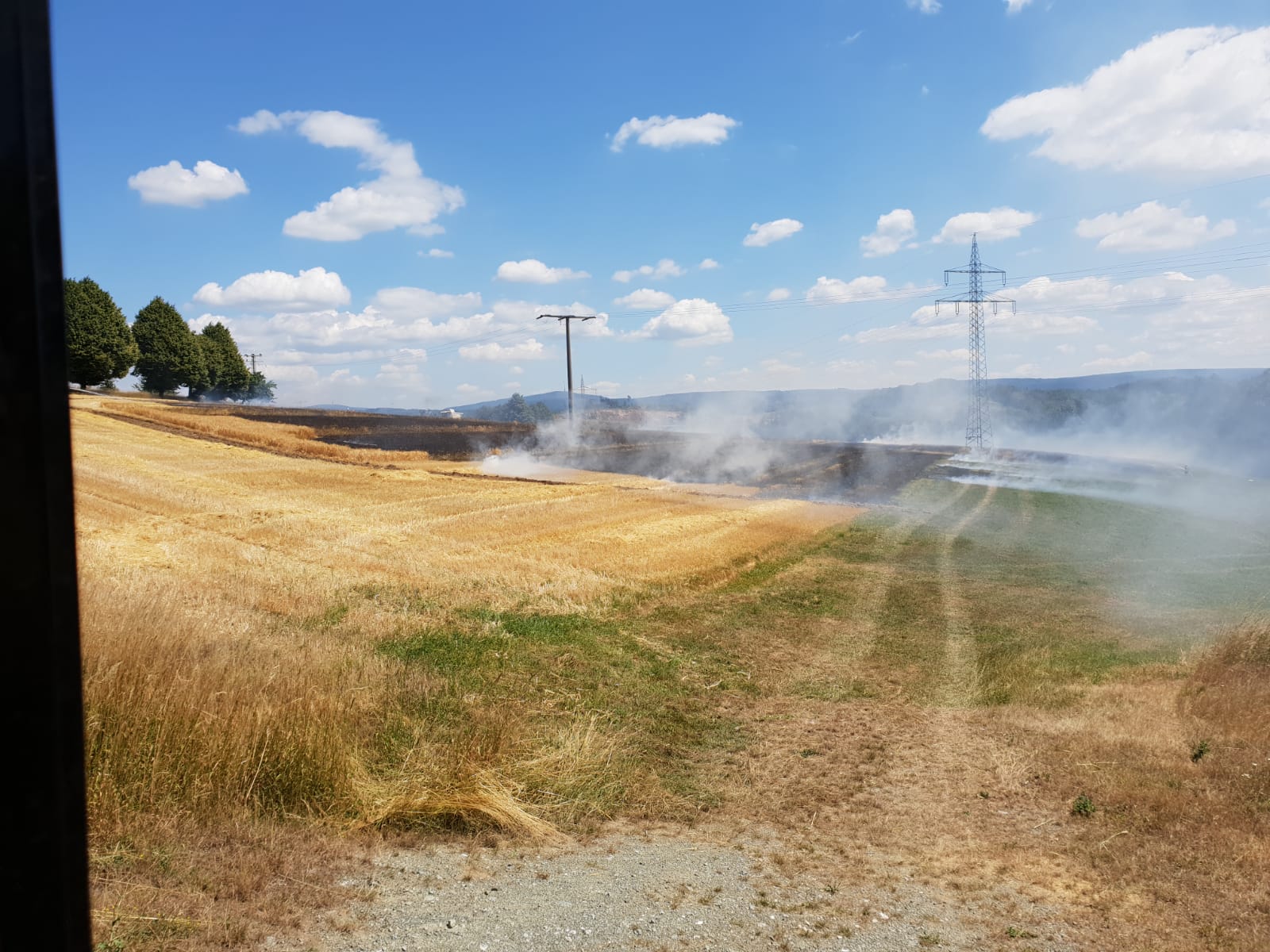 Heute geriet während Erntearbeiten ein Getreidefeld in Micheldorf in Brand. Wir wurden zusammen mit den Kameraden der Feuerwehr Rimlas gegen 13:35 zu einem kleineren Flächenbrand gerufen. Allerdings durchquerten wir bereits auf der Anfahrt eine dichte Rauchwolke und mussten kurze Zeit später feststellen, dass bereits das gesamte ca. 2ha große Feld brannte. Sofort ließen wir alle umliegenden wasserführenden Feuerwehren nachalarmieren, die kurze Zeit später eintrafen und uns bei den Löscharbeiten unterstützten. Es war Eile geboten, da der Wind das Feuer in die Richtung eines nahegelegenen Waldes trieb. Die Wiese wurde um das Feld herum mit mehreren mit Wasser befüllten Güllefässern angefeuchtet, um eine Brandausbreitung zu verhindern. Wir löschten auf und um dem Feld alle übrigen Brandherde ab, sodass bereits eine halbe Stunde später alle Flammen gelöscht waren. Abschließend befeuchteten wir den abgebrannten Boden, um ein erneutes Aufflammen zu verhindern.